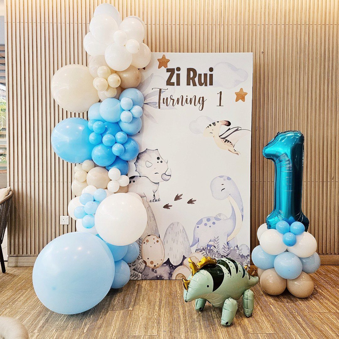 Pastel Blue Gentle Dinosaur Balloon Backdrop Decoration