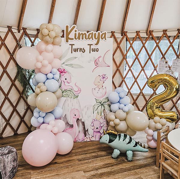 Pastel Dinosaur Girl Theme Balloon Backdrop Decoration – Eye-Catching Party Centrepiece